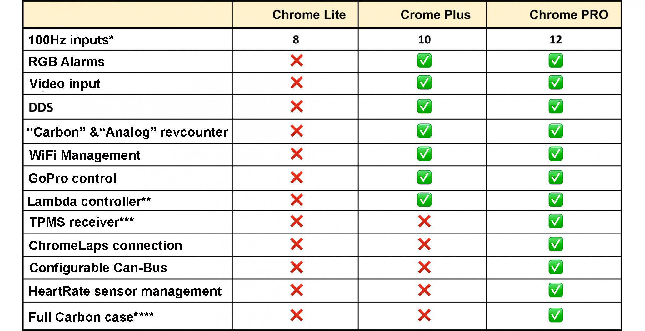 *Chrome has 8 external analog inputs, inputs 9 to 12 come from the can-bus