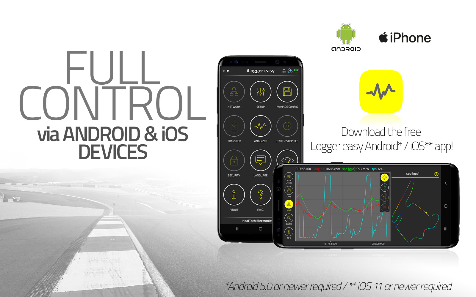 The iLE is the only data acquisition and telemetry system on the market that could be configured and managed wirelessly on Android/iOS devices. Quickly and easily alter settings with a finger tap. Download recorded data instantly, directly after your riding session. Via Wi-Fi, this takes only a few seconds.