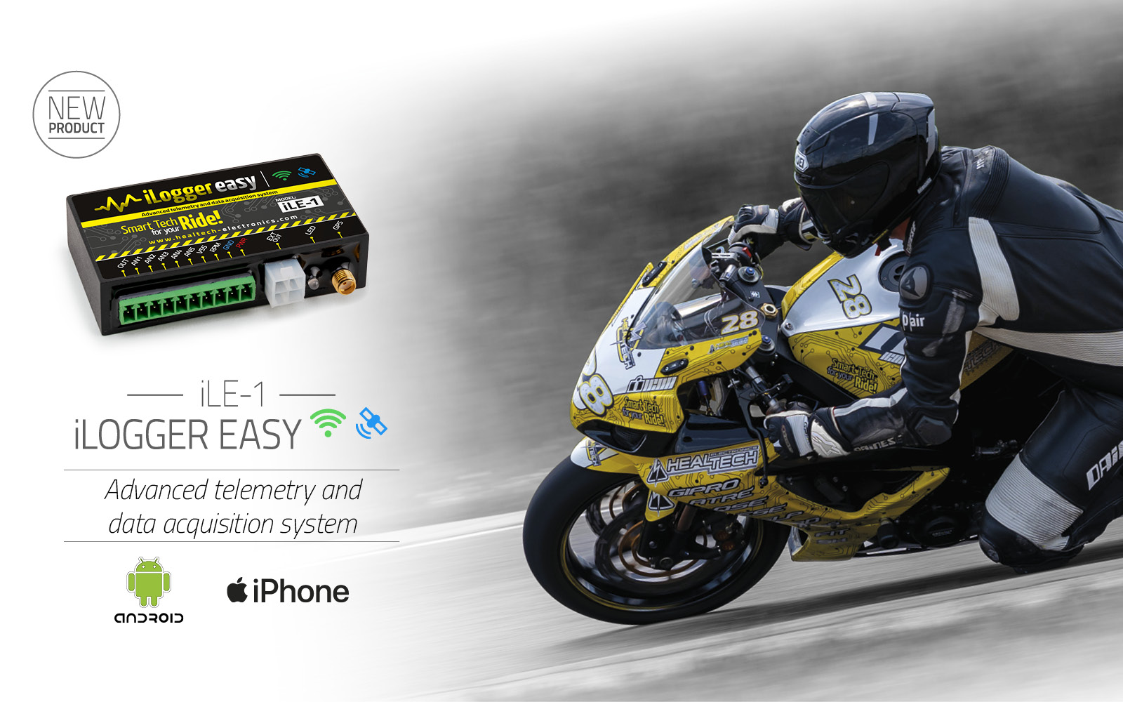 The iLogger easy (iLE) is an advanced data recording and analyzer unit with a real-time data display/dashboard function. The unit itself has 5 analogue / 2 digital channels to record (optional expansion module available separately) and comes with high accuracy, high-frequency GPS antenna. This ensures that no matter where you ride on open roads or a racetrack, you will get precise location values attached to the recorded data. This can be a huge help to all the riders, aiming to improve on riding, sector and lap times regardless of riding skills and experience. The iLogger easy is suitable for professional racers and race teams too.